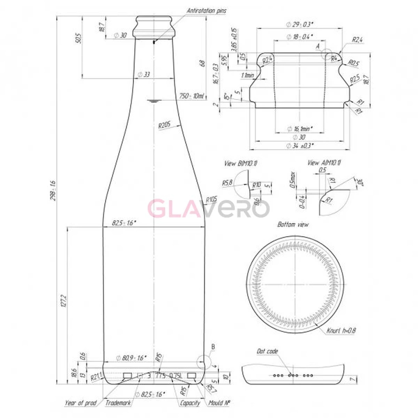 - Mündung: Geeignet für 29 mm Kronkorken oder Sektkorken mit Agraffe.