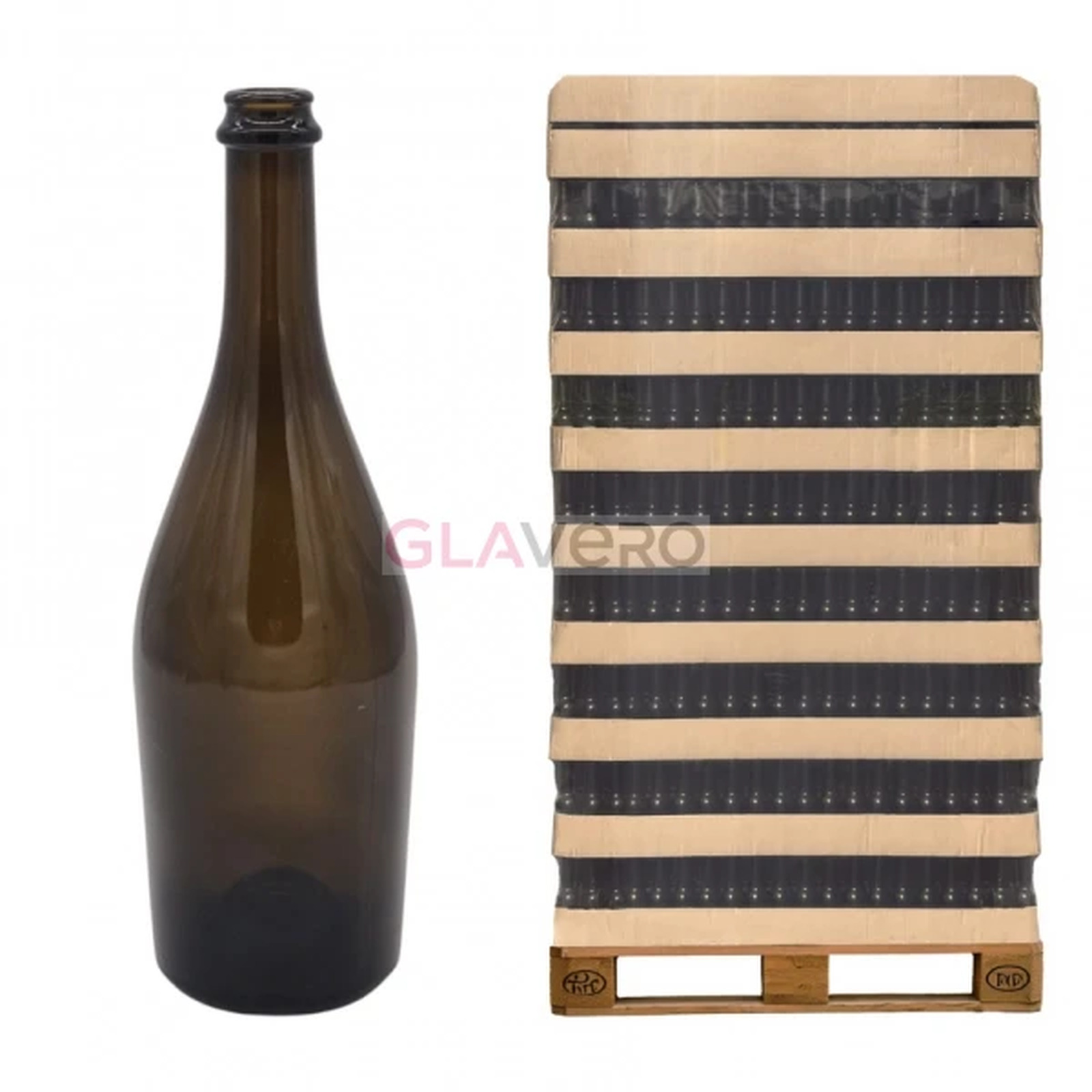 Klassische 750 ml olivgrüne Glasflasche für Champagner, Sekt und Schaumweine. Modell VGA Sparkling Inkerman, druckbeständig. Großhandel: sales@glavero.eu.