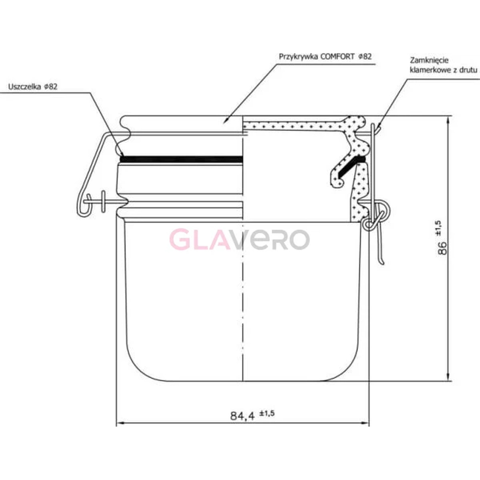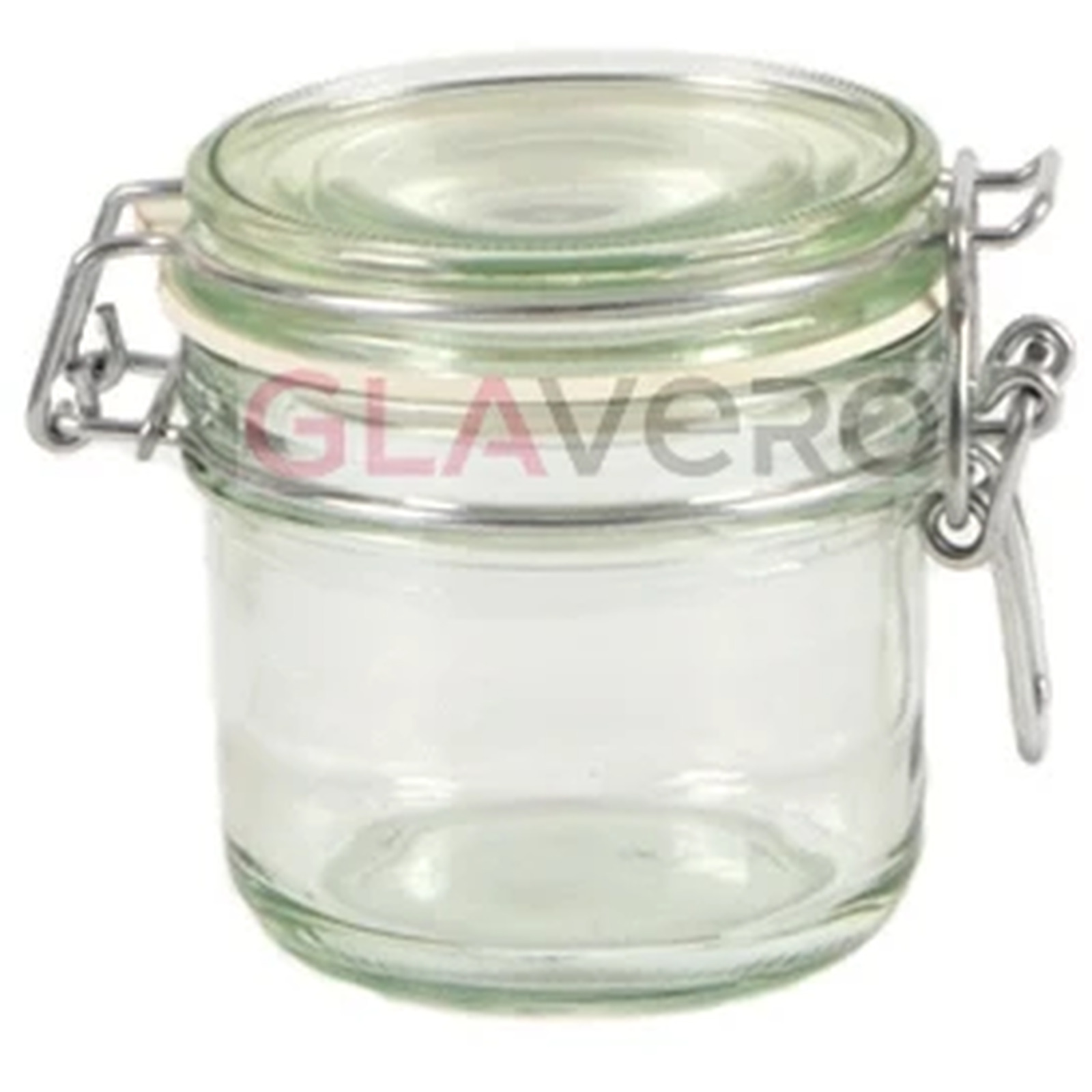 Die Glasdose der Serie "Komfort" ist mit einem klassischen Drahtbügelverschluss (Clip-Top) und einer hochwertigen Gummidichtung ausgestattet, die eine 100%ige Luftdichtheit garantiert. Dieses System bewahrt die Frische, das Aroma und schützt den Inhalt langfristig vor Feuchtigkeit. Das traditionelle und zugleich elegante Design wird besonders von Erzeugern geschätzt, die Wert auf Natürlichkeit und höchste Qualität ihrer Produkte legen.